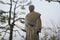 福山城に立つ阿部正弘像。福山10万石の藩主だった正弘は老中として幕末の難局に対応した