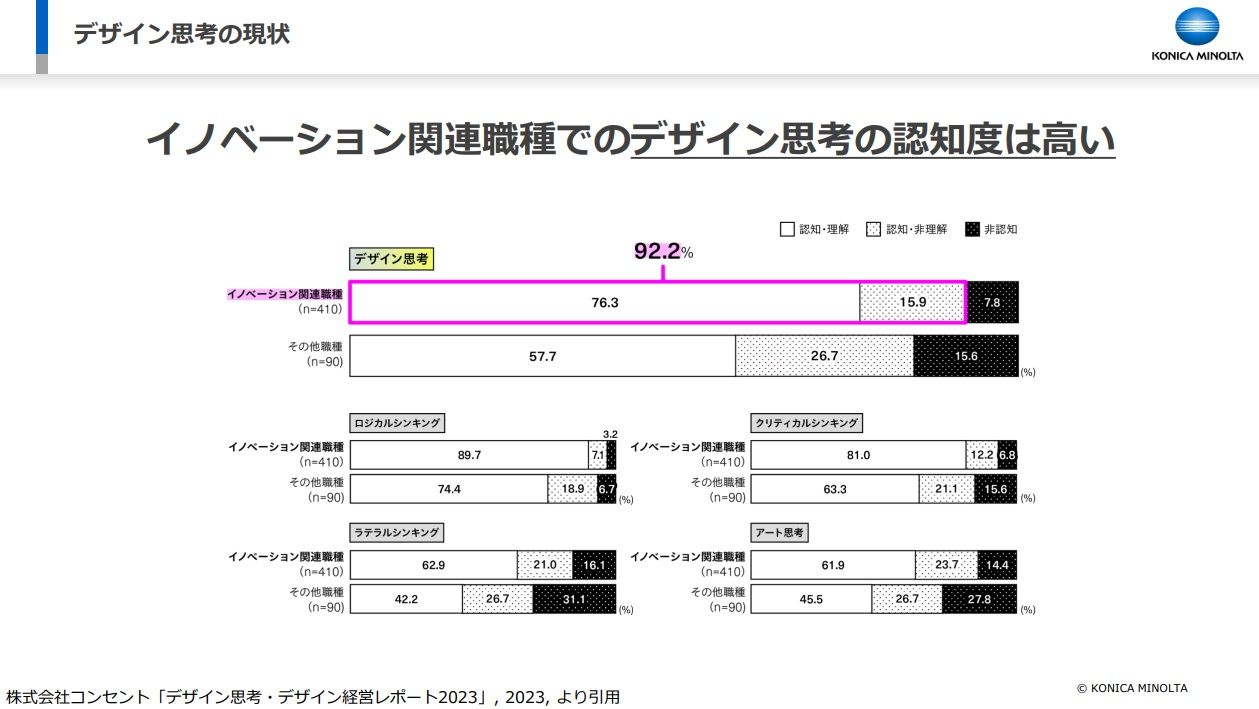 コニカミノルタの社内でも、デザイン思考について率直な意見をもらうのですが、「デザイナーみたいな特別なセンスがないと使えない」「イノベーションや新規事業以外の仕事では関係ない」などと言われます。
