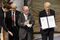 2024年12月10日、オスロでのノーベル平和賞の授賞式で賞状とメダルを授与された日本被団協代表委員の(右から)箕牧智之さん、田中重光さん、田中熙巳さん(写真:共同通信社)