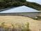 丘の稜線をゆるやかにつなぐような⼤きな屋根が特徴的な建物は地下2階、地上1階建てです。トップライトから⾃然光が⼊る階段室は地上から地下まで直線状に続いており、階段の両側に4つのギャラリーが配置されています。地上フロアの北側にはカフェを併設し、瀬戸内海を臨むテラスから、豊島や⾏き交う漁船など、瀬戸内海らしい景観を眺めることができます。