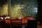 カウンターの背景に美しいタイルが壁一面に広がっている