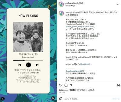 『環境活動ラジオ(仮)』では、ぴょんさんの語りの途中で、しばしば子どもがやって来て、ママに何か言って去っていく。ぴょんさんはそれを敢えて残し、普段着の家庭の様子をそのまま届けている。開始から半年で番組は16本。仲間も少しずつ増え、親子で山登りをしながら環境問題を考えるイベントも手掛けた。