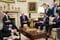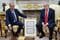 6月5日、米ホワイトハウスの大統領執務室でトランプ氏と会談したドイツのメルツ首相(左、写真:Pool/ABACA/共同通信イメージズ)