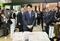 備蓄米を販売するファミリーマートの店舗を視察する小泉農水相(中央)。テレビは連日、その言動を伝えている(写真:共同通信社)