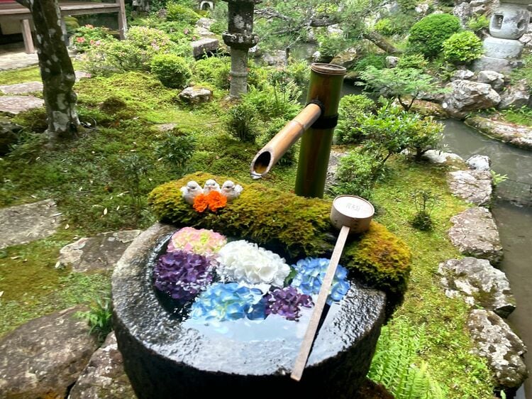 澄んだ空気と清らかな水に恵まれた境内には、四季を通して自然に花が咲き乱れ、特に紫陽花が美しかった。寺は長年かけて紫陽花5000株を植え、毎年6月に紫陽花ウイークを開催。このイベントを3万人の参拝者をあつめるまでに育てあげた。