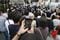 都議選の街頭演説の様子をスマホで撮影する人(写真:共同通信社)