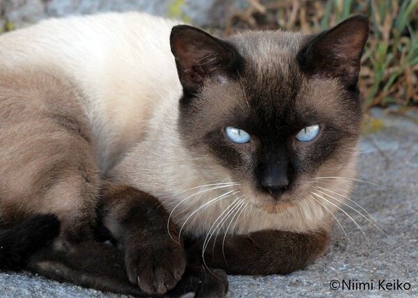 シャムネコ柄の猫を見ると、遠い昔、大航海時代にタイから連れてこられた猫の子孫かもしれないと、ふと思います。猫の柄は、何代かあとに突然、眠っていた遺伝子が現れて、親と全く異なる柄の子猫が生まれることがあるからです。