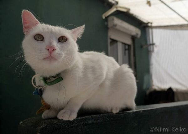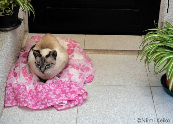 「猫は日向ぼっこが好きだから、玄関ポーチで快適に過ごせるようにしているの。家の中は狭いから、猫は外の方が好きみたいよ」と、この家の若い女性が話してくれました。