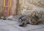 泊まったホテルの屋上から見渡して、猫がいそうな場所の見当をつけます。そこに向かっていって出会った猫は、「Dino」と書かれた名札を見せてくれました。「ディノ」と呼ぶと、うれしそうに頭をゴッツンコしてくれました。