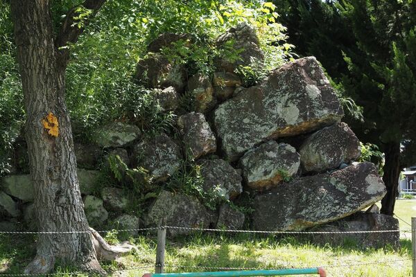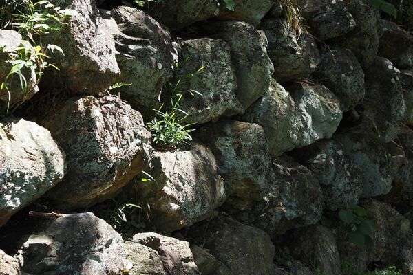 本丸東側・外枡形部分の石垣。本丸の石垣は所により比較的よく残っている