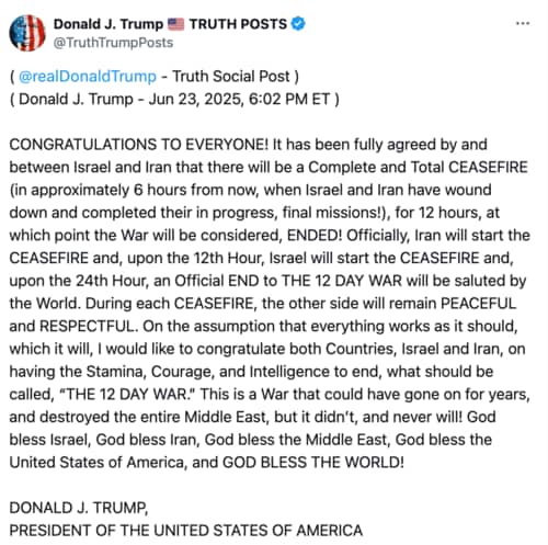 6月21日、遂に米国がイランの核施設を攻撃し、中東情勢は一気に緊張が高まった。その3日後、トランプ米大統領はイランに加え、長年の同盟国であるイスラエルを鼻息荒く恫喝した。同氏が前日SNSで「神よ世界に祝福を!」などと高らかに宣言した「停戦合意」が、当事国によっていともたやすく破られ、特にイスラエルが「今までに見たこともないような量の爆弾投下(トランプ氏談)」をしたからだ。