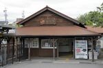 亀崎駅は木造平屋建てのシンプルなつくりで、赤茶色の素朴な色合いが古めかしさを醸し出している。駅舎内は券売機が1台のみで、駅員はおらず無人駅だ。ごろ寝防止?の肘