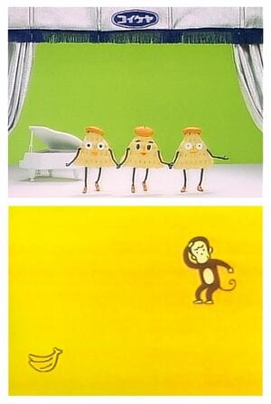 [上]ポリンキーの秘密(湖池屋)[下] バザールでござーる(NEC) ともにアドミュージアム東京所蔵