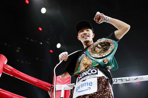 IBF王者の西田凌佑選手(六島)に試合早々から猛攻を仕掛け、6回TKO勝利。圧巻の強さを際立たせた。