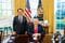 4月16日、米国との関税交渉のためホワイトハウスでトランプ大統領と会談した赤澤亮正担当大臣(White House/ZUMA Press Wire/共同通信イメージズ)