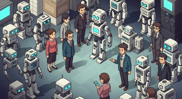 人間とAIエージェントが共存する社会はどのような姿に?(筆者がWhiskで生成)