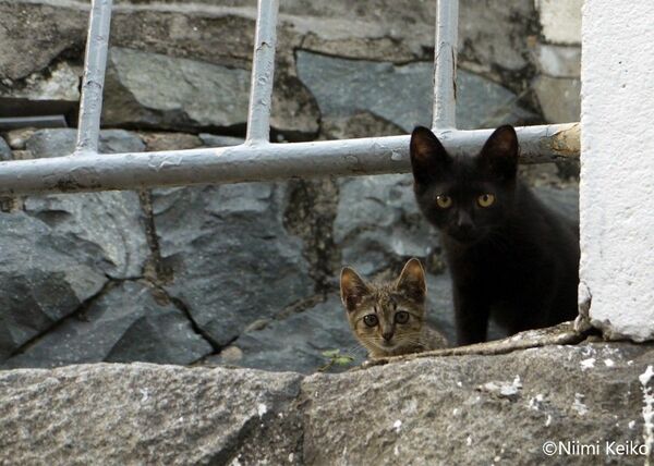 水を飲んでいる猫もいます。世話をする人がお水を替えてくれているのだなと思いました。