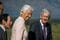 ジャクソンホール会議の休憩中、ECB(欧州中央銀行)のラガルド総裁や日銀の植田総裁と散歩するパウエル議長(写真:AP/アフロ)