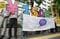 東京・霞が関の厚労省前で、最低賃金を全国一律で1500円以上に引き上げるように訴える労組関係者=7月11日(写真:共同通信社)