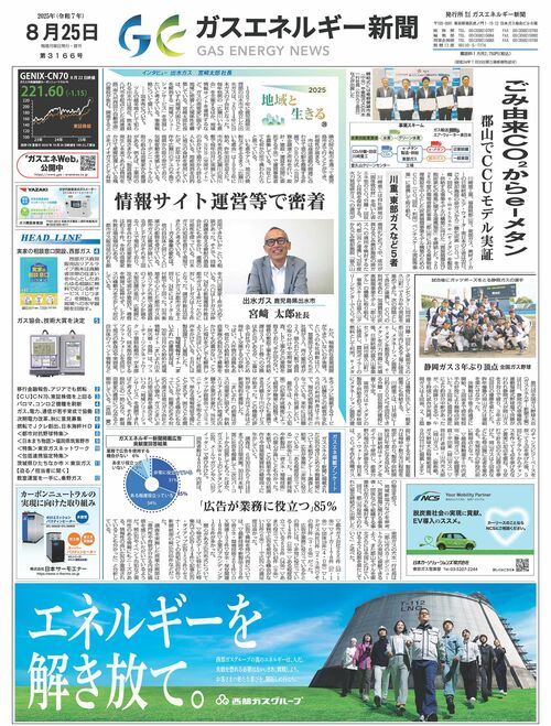 【ガスエネルギー新聞】都市ガス会社の今を報道する業界唯一の新聞。天然ガス、LNG、燃料電池などガス業界の技術や製品情報、企業ニュースの他、周辺業界や行政の動きなども幅広く報道する。2023年7月から新メディア「ガスエネWeb」を公開中。
