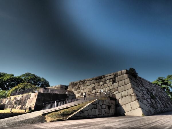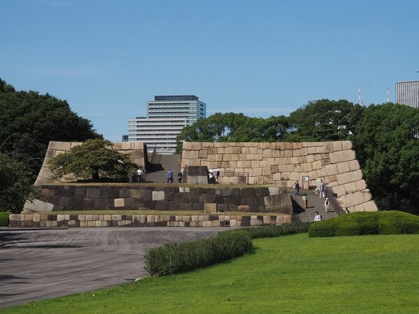 江戸城の現存する天守台は瀬戸内産の花崗岩を用いた白い石垣だ。石材の加工や積み方の技術も高度で美しい