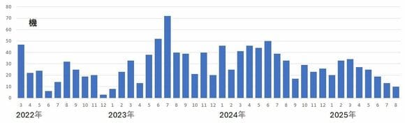 2025年4月以降、ロシアの防空兵器の損失が急激に減少しているのは、ロシアの防空兵器が攻撃を免れているのではなく、その在庫数(配備数)が減少しているからだと考えられる。