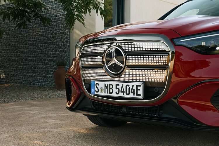 Mercedes-Benz GLC 400 4MATIC with EQ TechnologyライバルのBMW iX3と比較するとコンサバティブなデザインだが、これは引き続き併売される現行の内燃機仕様のGLCとの属性を示すため。グリルは専用の新設計となる