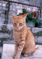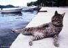 城塞の終点に来たころには、山肌に日がさし、雨が止みました。カフェ・レストランのテーブルの下で雨宿りをしていた猫たちが、ノビをしながら歩き出していました。