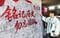 映画『731』のポスターの隣に設置された「签名墙」(署名壁)。映画を見た人々が名前などを書いていた(写真:CFoto/アフロ)