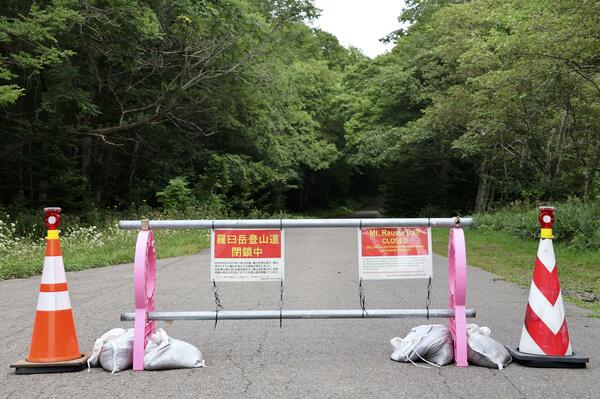 閉鎖された羅臼岳登山道へ通じる道路(写真:共同通信社)
