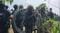タイ兵が、タイとカンボジアの国境沿いにあるプレイ・チャン村に有刺鉄線を運んでいる様子(2025年9月17日、写真:AP/アフロ)