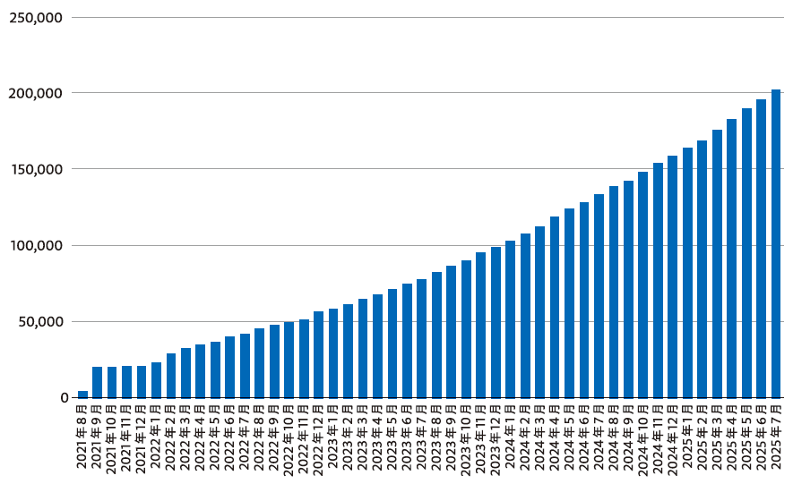 その件数は2024年1月に10万件突破し、2025年7月には20万件突破と、1年半で2倍となる勢いで増加しています。