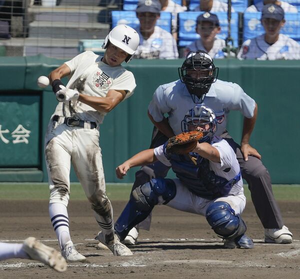 今夏の第107回全国高校野球選手権大会では、西東京代表の日大三高が活躍。決勝で沖縄尚学に敗れたものの見事準優勝に輝いた。写真は準決勝の県岐阜商戦で、延長タイブレークの10回表、櫻井選手がタイムリーを打ったシーン(写真:共同通信社)
