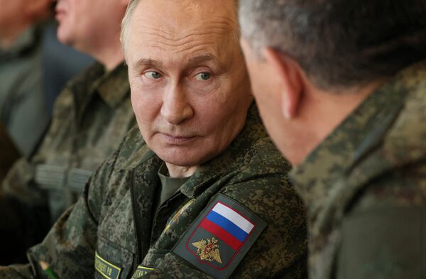 9月16日、ベラルーシとの合同軍事演習「ザーパド2025」を視察したロシアのプーチン大統領(写真:代表撮影/ロイター/アフロ)