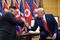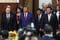 2025年9月2日、北京に到着し、中国共産党の幹部らから出迎えを受ける北朝鮮の金正恩総書記(中央右)と金主愛氏とされる娘(右から3人目)(中国・北京、写真:AFP=時事)