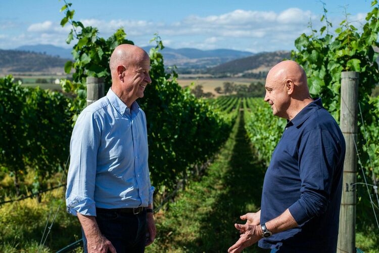 左/マーティン・ショウ氏。トルパドル・ヴィンヤードのオーナー兼マネージングディレクター。アデレード大学とボルドー大学で醸造学を学び、国内外で醸造家として、またコンサルタントとして活躍。右/マイケル・ヒル・スミス氏。オーナー兼マネージングディレクター。1988年、オーストラリア人初のマスター・オブ・ワインとなる。国際的なワインコンペの審査員や、ワインコンサルタント業務を行い、自社ワイン以外でも豪州ワインの品質向上に貢献している。