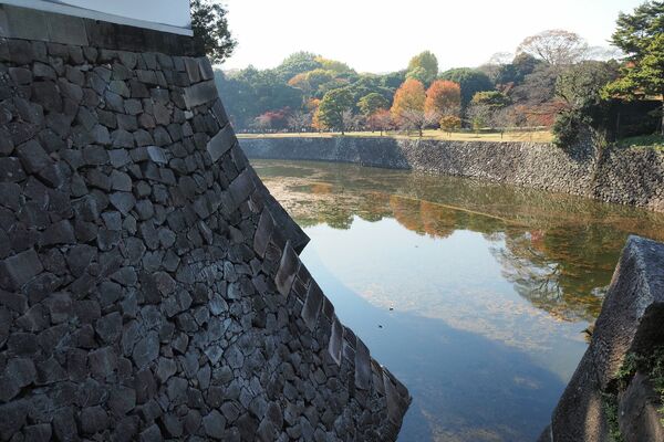 北拮橋門前から見た乾濠。水面からの高低差が凄い