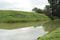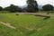 北郭(画面左手)から主郭(右手)への通路は複雑に屈曲し、枡形虎口のようになっていて横矢も掛かる