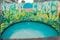 江戸桜通りのビル建設現場(東京都中央区日本橋本町1)の仮囲いをキャンバスとして制作された巨大壁画。アーティストは、絵本作家としても活動する画家の北林みなみさん。幼少期を過ごした東南アジアの自然から影響を受けた