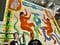 江戸桜通りのビル建設現場の壁画。アーティストは沖縄在住の“看板屋”としても活動する安眠さん。やわらかな曲線によるポップな筆致で架空の生きものたちを表現。「人通りが多い場所なので、制作中はじゃまにならないように気をつけました」