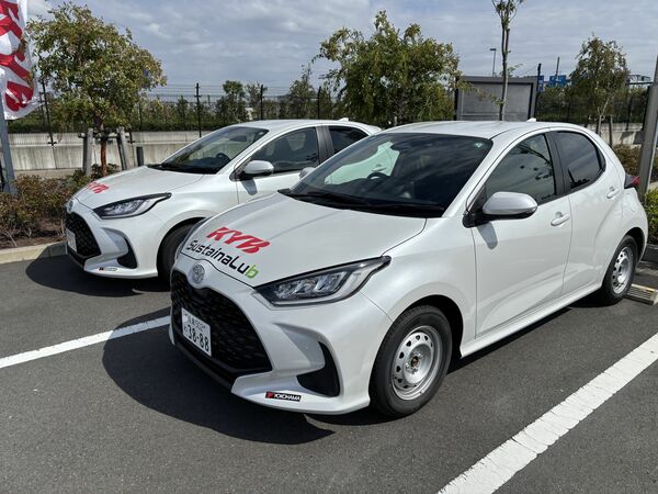羽田空港近くの施設を基点に実施された、カヤバの報道陣向け試乗会では、異なる作動油を使った2台の「ヤリスハイブリッド」を乗り比べた(写真:筆者撮影)