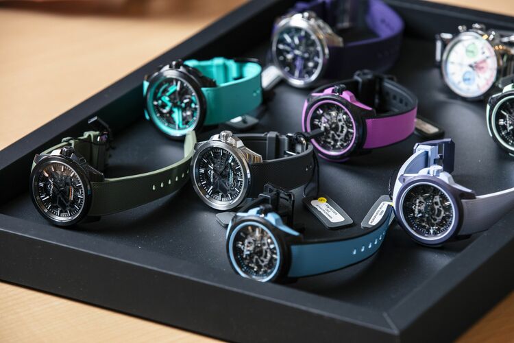 ずらっと並んだノルケインのモデル。どの時計も色彩豊かである