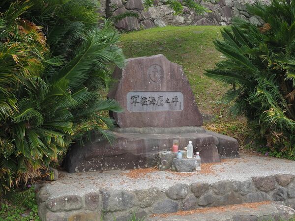 大分県の日出(ひじ)城裏手に残る「海鷹(かいよう)」の碑。商船改造空母の「海鷹」は海上護衛総隊にも所属したが、別府湾に擱座した状態で敗戦を迎えた