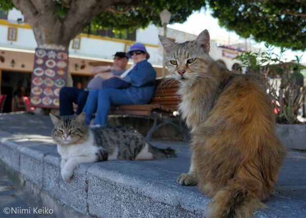 ロドス旧市街のランドマーク、ヒポクラテス広場近くの木陰で猫たちが涼んでいました。
