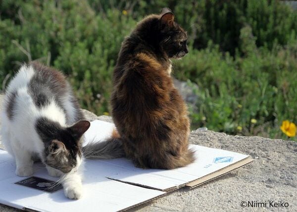 ここには、ざっと10匹くらいの猫がいました。誰かが猫たちのために置いたのか、段ボールを敷物にして快適なようすです。