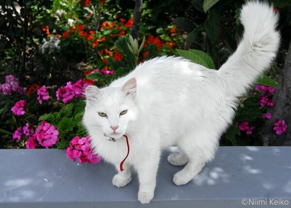 「白い町」リンドスに着いて最初に出会った猫は、真っ白でした。なぜか、幸先がいいかも?と思いました。