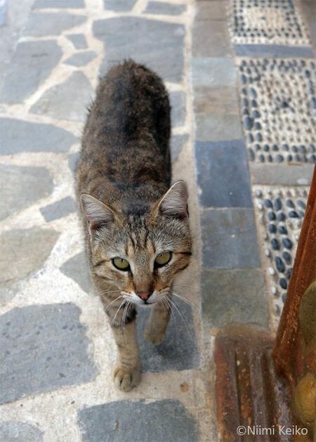 じっとこちらを見ながら、近づいてきた猫がここにも。リンドスでは、人懐こい猫が多かったという印象が残っています。