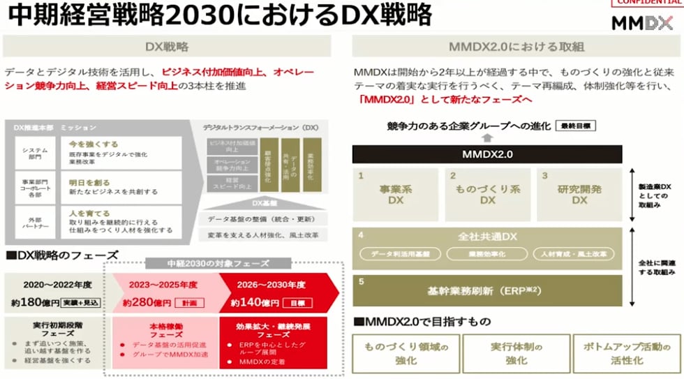 着実に成果を上げてきた結果、現在は「MMDX 2.0」として新たなフェーズに入っている。以前と大きく変わった点に関して、端山氏は「製造業としての強みを生かすため、ものづくり領域や研究開発にもDXを広げました」と話す。