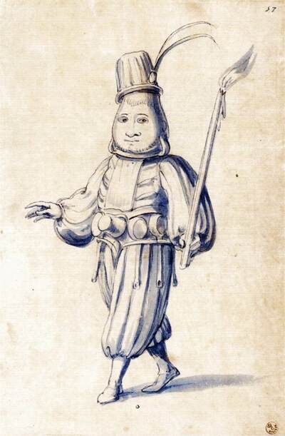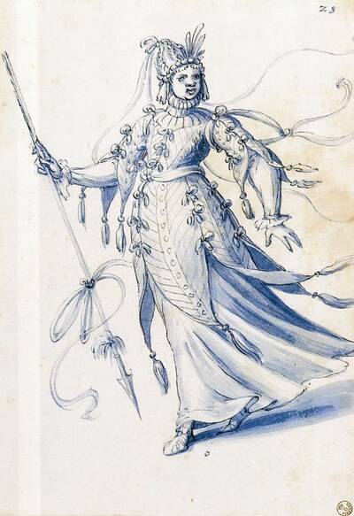 以下のデザインはルドルフ2世に献じられた馬上試合の装飾デザイン(1585年頃)で、フィレンツェのウフィツィ美術館が所蔵するものの一部です。