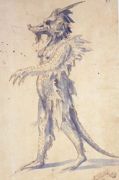 龍の仮面をかぶった男 ペン、青の淡彩・紙 29.0×19.1cm フィレンツェ、ウフィツィ美術館